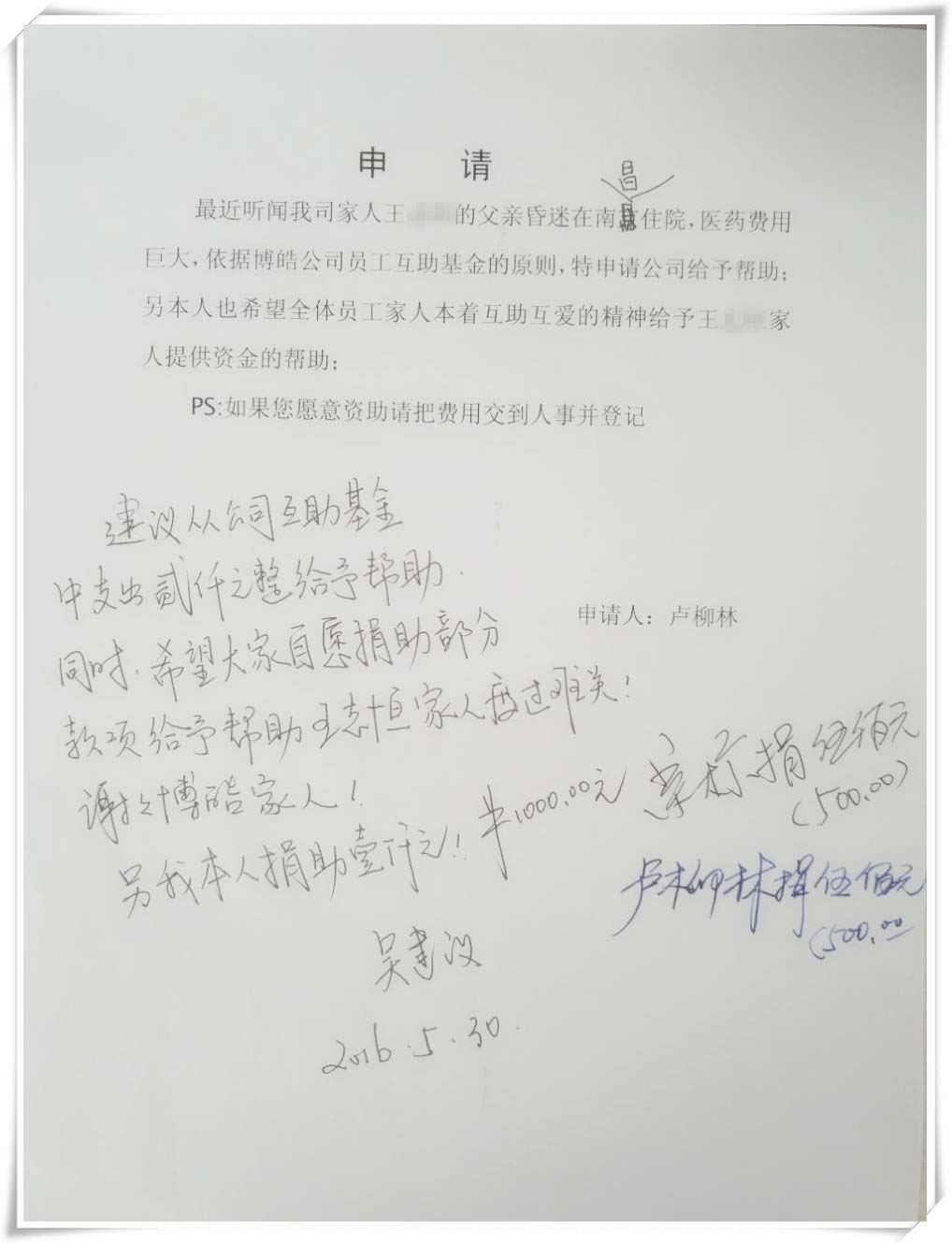 在博皓這個大家庭里,無論是硅膠雜件成型部、硅膠按鍵印刷部、硅膠制品研發部等其他各個部門,還是博皓慈善基金會都積極發揚博皓“積善行,思利他”的企業文化精神,獻出了自己的愛心。希望能夠盡自己一份力去幫助這位堅強的博皓家人,希望患者能早日康復,希望好人一生平安。愛在博皓,溫暖你我他……