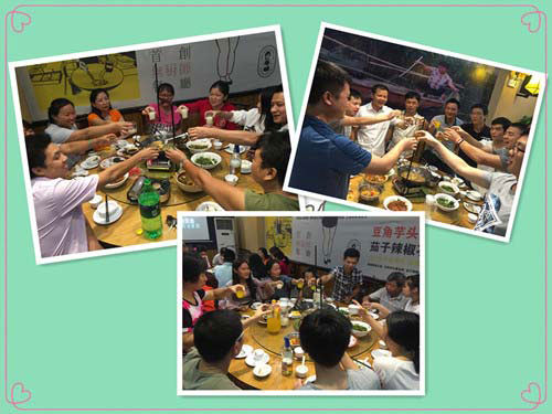 其實在茫茫人海中,大家能相遇在一起,是一種緣份;在各種公司林立的大千世界中,我們能相聚在博皓電子里共事上班,那更是一種緣份。我們應該珍惜這份來之不易的緣份。平時大家忙于硅膠按鍵生產上的一些事情而沒有時間坐下來一起吃個飯聊聊天什么的。現在有時間的時候就應該好好的聚一聚,即可以放松下心情,又可以增進彼此之間的友誼情感。讓我們這個團隊的凝聚力更強。