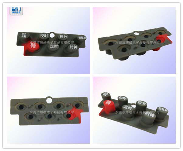 在博皓硅膠制品生產(chǎn)的電子定時(shí)器硅膠按鍵采用的是模壓成型,字符采用的是單色絲印,背部導(dǎo)電采用的是導(dǎo)電黑粒,硅膠硬度在60°±5,按鍵使用壽命達(dá)到上百萬次。