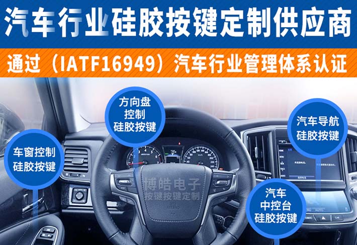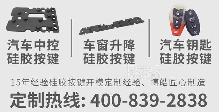 以博皓這么多年經驗積累,人才儲備,相信在汽車硅膠按鍵這個行業能夠發揮出自己的優勢,拿出博皓貨真價實的硅膠按鍵技術經驗來,為汽車界提供硅膠按鍵定制解決方案,更是為客戶提供優質的汽車硅膠按鍵制品。如果您正好有需要可以直接聯系博皓在線客服哦,汽車硅膠按鍵定制數量不限制,多少都可以定制。期待您的光臨。