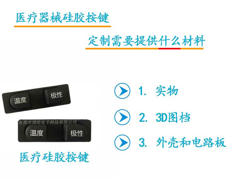 2020年由于疫情的影響,全國各地的醫(yī)療器材大量的消耗。醫(yī)用產(chǎn)品的需求量大大增加,而又因為疫情的原因許多硅膠制品廠家不能復(fù)工,選擇一家有資質(zhì)的硅膠產(chǎn)品生產(chǎn)廠家就極其重要。小編作為專業(yè)生產(chǎn)硅膠按鍵工廠的一員,也希望在這個困難時期盡一點綿薄之力。小編就說一下醫(yī)療器械硅膠按鍵定制需要提供什么材料?