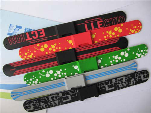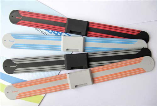硅膠拍拍帶是最近市場比較流行的一款運動型產品的附屬品,產品主要是運用在電子手表,脈搏測試儀或者純屬裝飾品。這種產品因為顏色比較多,經過的各段的工藝流程比較復雜。而博皓電子在經過不到4年的發展已經擁有3個工廠的生產規模,目前擁有成型機器42臺,生產需要的相應絲印設備噴涂設備一應俱全,并且每個工廠能維持在150人的生產力,所有的工藝均是在本廠內部完成。