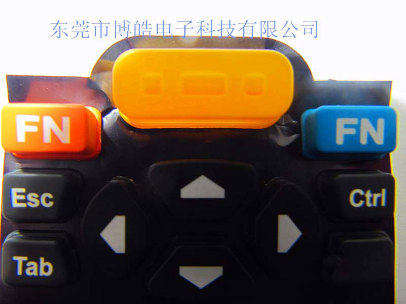 - 產品簡介:這款產品是P+R按鍵中的一種噴涂鐳雕工藝,具體工藝:塑膠ABS注塑成型經過噴油絲印和鐳雕等6次工序,然后再通過特殊的膠水將硅膠和塑膠粘合而成。