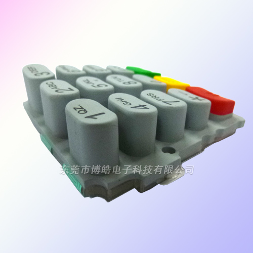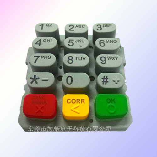 - 本款硅膠按鍵是一款出租車(chē)上的銀聯(lián)POS機(jī)|刷卡機(jī)上專(zhuān)用硅膠按鍵,采用絲印+噴涂工藝。博皓承接來(lái)圖設(shè)計(jì)定制生產(chǎn),為客戶(hù)提供省心硅膠按鍵定制服務(wù)!